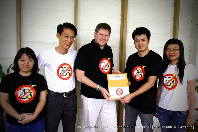 Vào lúc 2h chiều ngày 04 tháng 08 năm 2013 vừa qua, tiếp nối chương trình gặp gỡ các tổ chức quốc tế về nhân quyền có văn phòng tại Bangkok, Thái Lan, năm thành viên Mạng lưới bloggers Việt Nam đã có buổi gặp gỡ thân mật với Phil Robertson, phó Giám đốc khu vực châu Á của Tổ chức Theo dõi Nhân quyền (Human Rights Watch, viết tắt: HRW) để trao Tuyên bố 258.